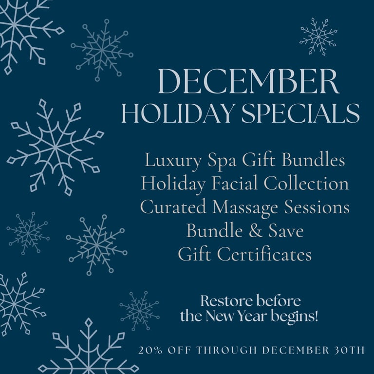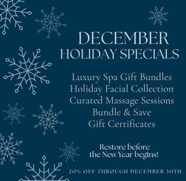 Through the month of December, receive 20% off our Classic Facials and unique Massage therapy packages and more. Visit the link below to schedule directly online. Call 913.295.9394 for more information.