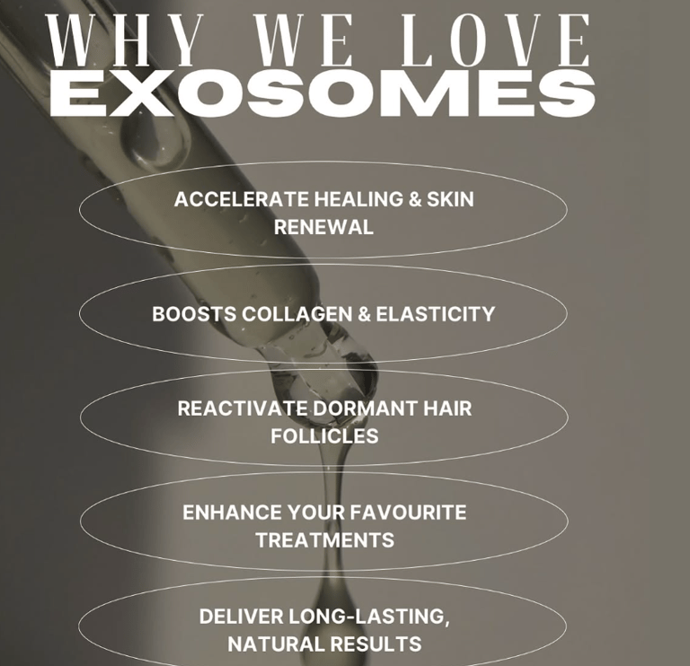 Exosomes are nano-sized naturally occurring extracellular vesicles released by stem cells and other cells in the body. In skincare and regenerative medicine, Exosomes have become a cutting-edge treatment because of their role in cell-to-cell communication and tissue repair. See more below!