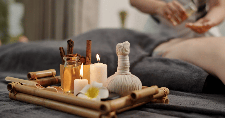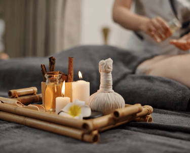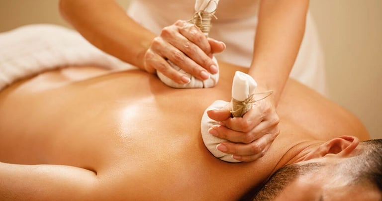Traditional Thai Herbal Compress Therapy, ‘Luk Pra Kob’ (ลูกประคบ) involves using a compress made of a blend of therapeutic herbs, including ginger, turmeric, kaffir lime, camphor, castor oil, tamarind, and lemongrass. When heated, the herbal essences penetrate the skin, promoting deep muscular relaxation and a holistic detoxification treating muscle pain and joint stiffness.