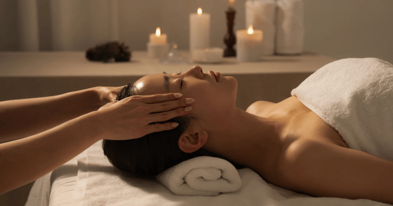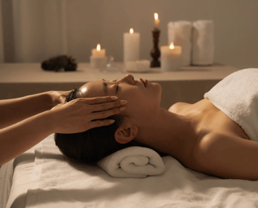 A scalp massage is designed to relax the mind and encourage circulation. Many times, tension is felt within the head and neck, so this massage can be very effective as a stress reducer. Warm oil is often massaged throughout the scalp, working to relax tight muscles in the temple and neck regions.