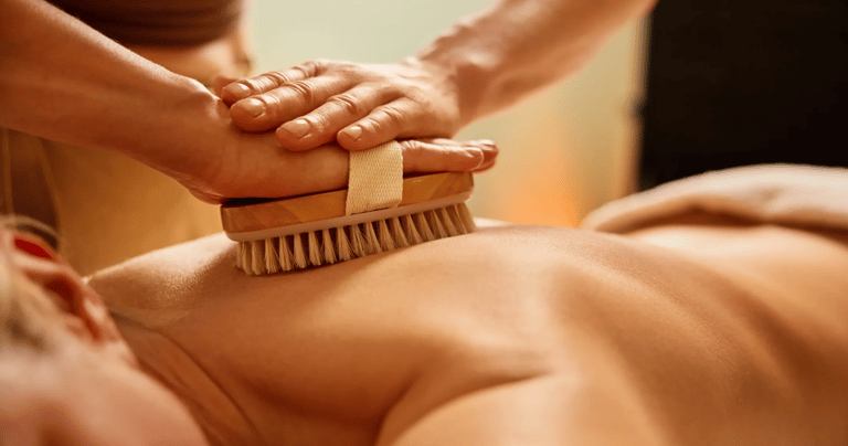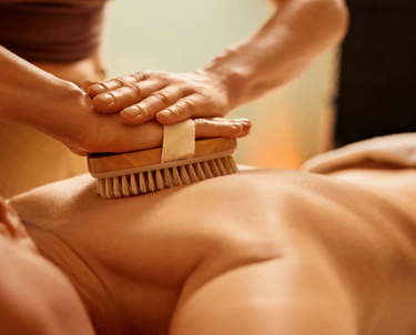 Dry brushing involves gently massaging the body with a natural bristle brush to help exfoliate the skin, stimulate the lymphatic system, and increase circulation. When used in massage sessions, this benefits the skin by helping exfoliate the skin, while increasing superficial blood and subsequent lymphatic fluid flow, it can enhance the absorption of nourishing oils used in your session.
